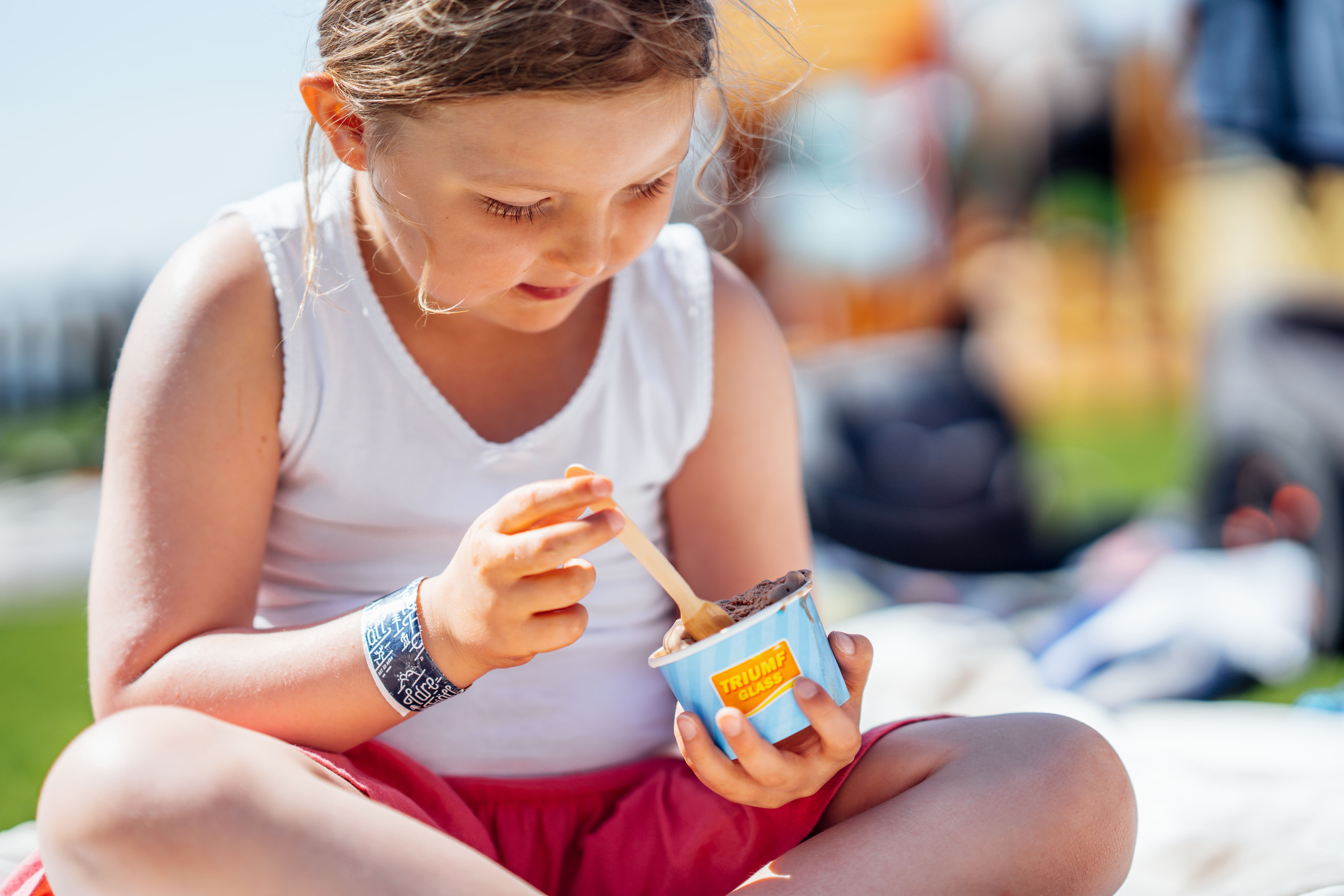 Come by our café for a tasty break! We serve pancakes, hot dogs, and delicious ice cream from our ice cream bar.