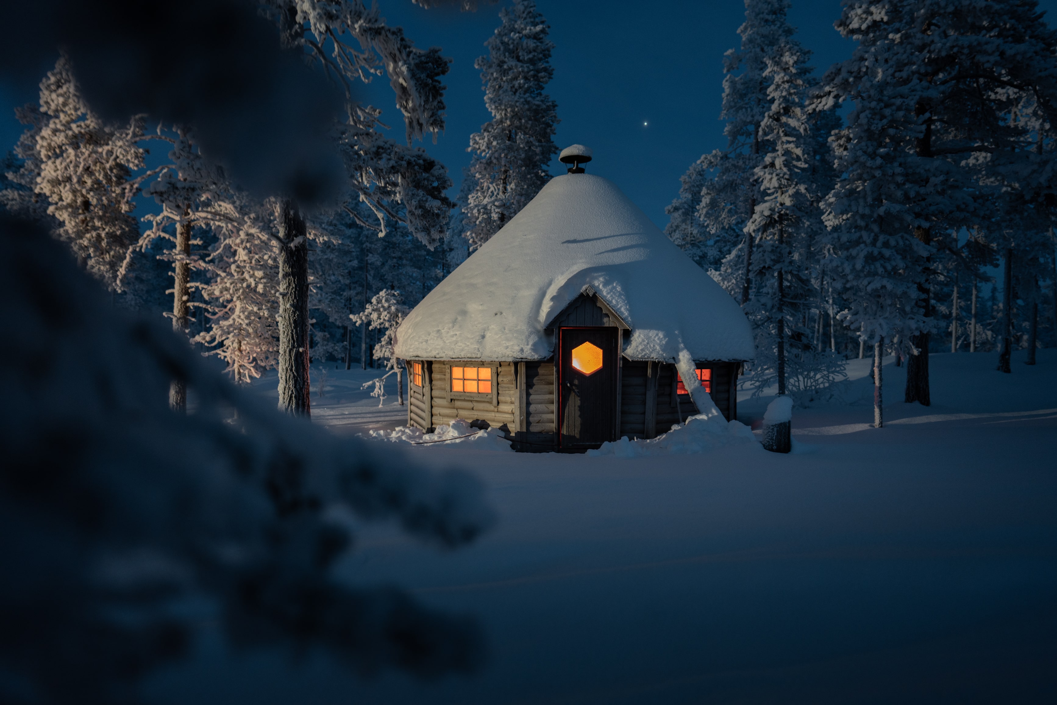 Welcome to discover unique winter experiences and relaxation in breathtaking mountain scenery! Join us for exciting adventures like moose safaris and ice fishing, or unwind with a private relaxation experience overlooking the stunning view of Mount Städjan.