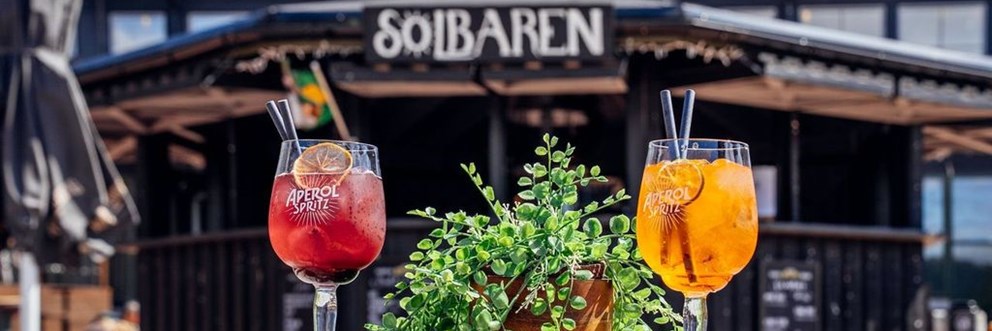 På Solbaren kan du njuta av somriga drinkar, öl, vin, snacks och fika. Det erbjuds även matservering från understället.
