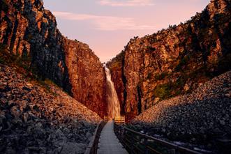 Beskrivning: En klassisk barnvänlig tur som utgår från parkeringen vid Sjöstugan, Grövelsjön. Följ skyltning på väl underhållen led med spänger och möjligheter till stopp. Naturen är varierad och bjuder på milsvid utsikt. Ett kort parti på cirka 300 meter är stenigt precis före vindskyddet. Du är framme vid det pittoreska vattenfallet (3 meter högt) efter 3,5 km. Därefter följer leden renstängslet som avgränsar mot Norge, för att sedan vika nedför tillbaka till Sjöstugan.